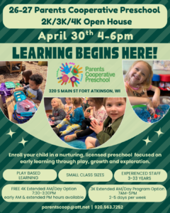 Call 920-563-7252 or email parentscoop@att.net to set up a tour.